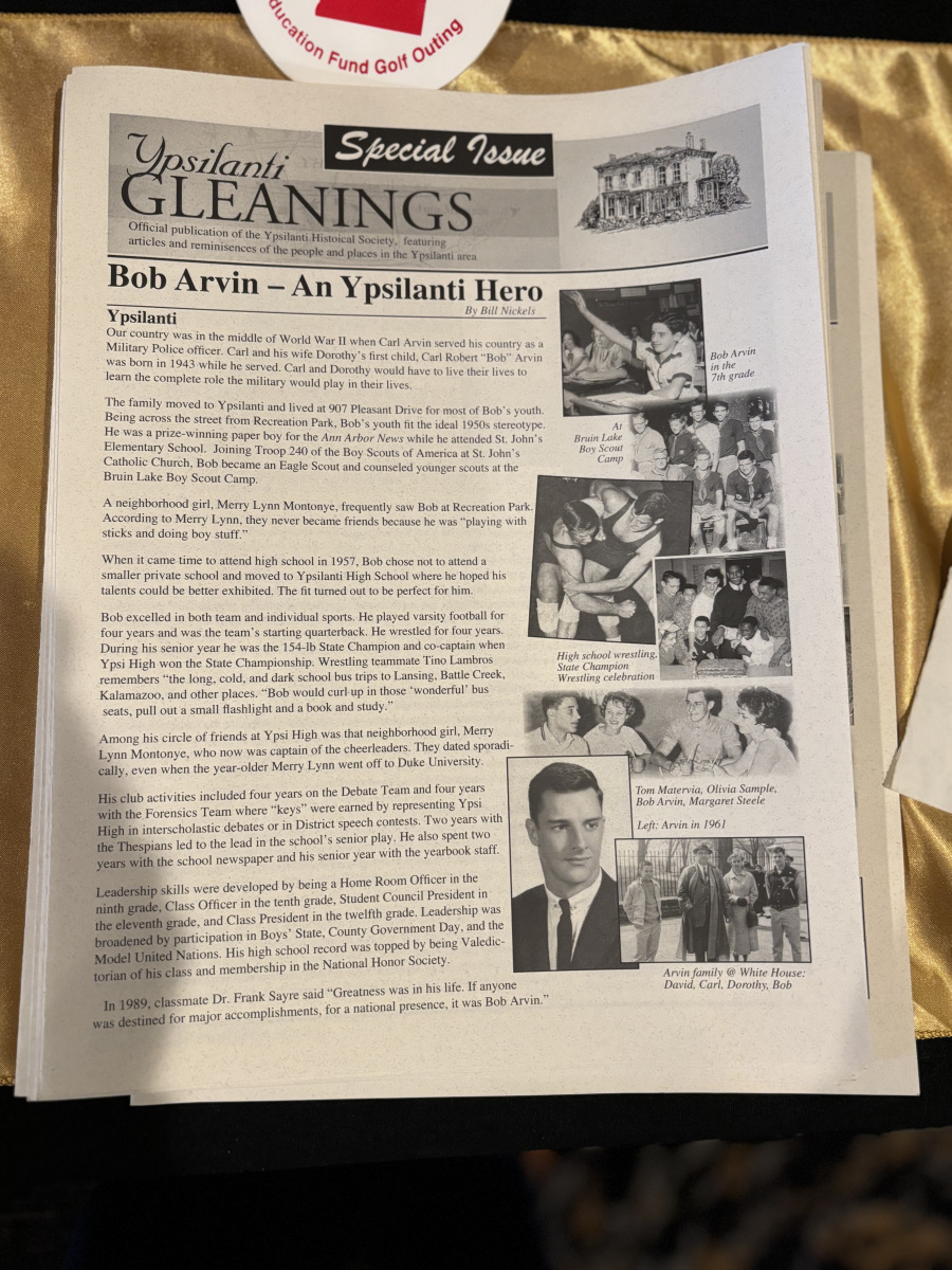 Held at the Emagine Theatre in Canton, Michigan, the evening centered on a documentary film produced by Brian Kruger at Stunt3 Multimedia, chronicling Capt. Arvin’s remarkable life—from First Captain and wrestling team captain to his final act of bravery in Vietnam. A reception beforehand featured memorabilia, including Arvin’s Pershing Award on loan from the Ypsilanti Historical Society and reflections from those who knew Capt. Arvin personally. The film is available for streaming at the link above.